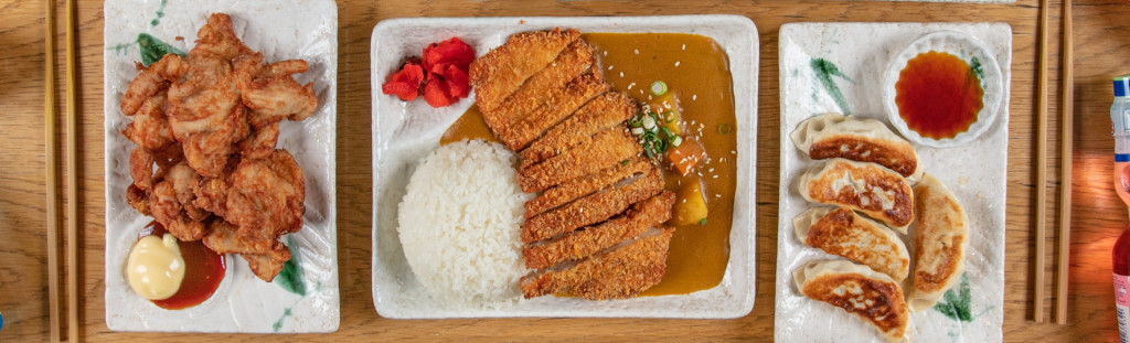 Teriyaki Beef, Katsu, Fried Chicken, Sushi, Miso Soup, Salad and Rice